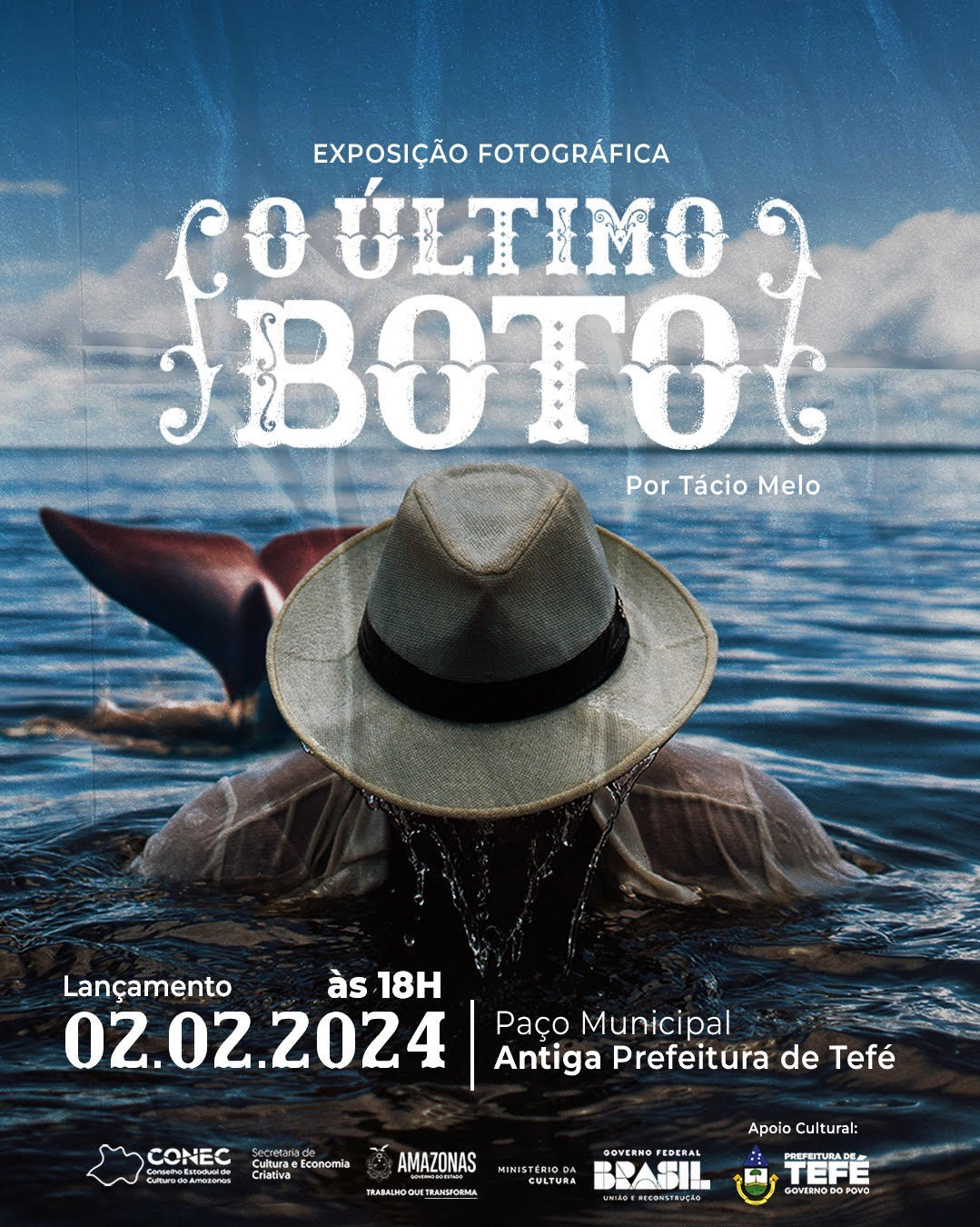 O fotógrafo Tácio Melo escolheu o município de Tefé, no interior do Amazonas, para lançar seu novo projeto, a exposição “O Último Boto”, que faz um apelo à preservação das espécies de golfinho amazônico, ameaçadas pelos efeitos das mudanças climáticas. A mostra foi aberta ao público no dia 02 de fevereiro, a partir das 18h, no prédio histórico da antiga prefeitura municipal.