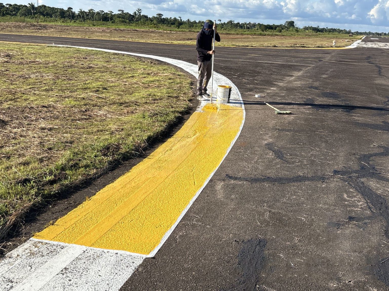 Além da recuperação do asfalto, a Seinfra executou a construção de uma pista lateral de acesso ao aeródromo em pavimento rígido, com 68 metros de comprimento. A sinalização horizontal, realizada com tinta acrílica específica para aviação, também está sendo implantada para orientar os pilotos e cumprir as normas vigentes de segurança aeroportuária.