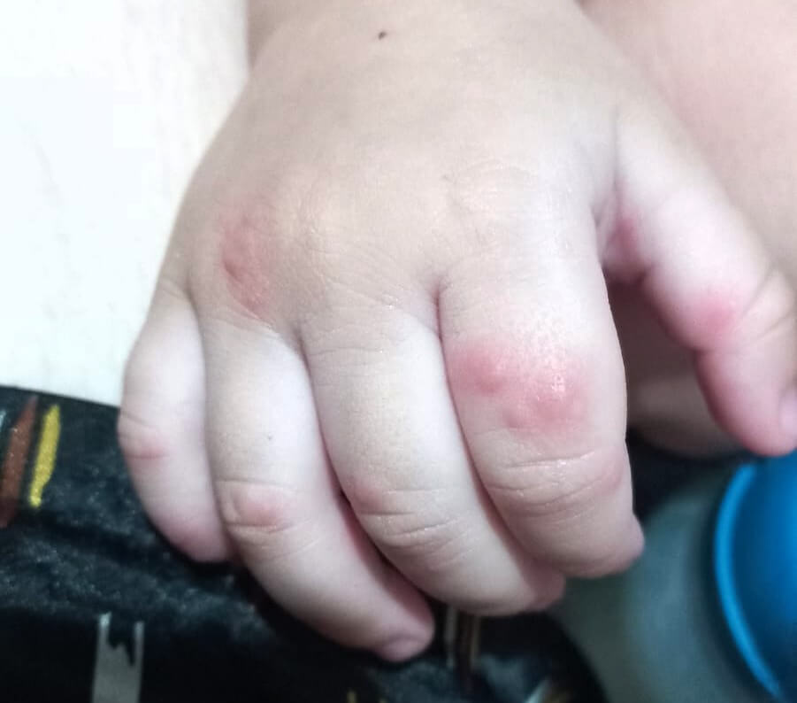 A publicitária Patrícia Lima, mãe do pequeno Alexander Noah, de 1 ano e 3 meses, relatou que inicialmente confundiu as bolhas com picadas de mosquito, mas após avaliação médica foi confirmado o diagnóstico da síndrome mão-pé-boca.