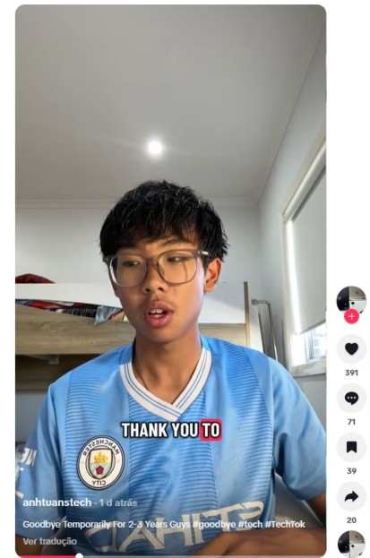 O criador de conteúdo Anh Tuan também divulgou seu último vídeo antes do bloqueio, agradecendo o apoio e deixando um recado aos seguidores: “Daqui uns 2 ou 3 anos, quando eu recuperar minha conta, vou postar muito mais”. Ele cria conteúdos de tecnologia para mais de 8 mil seguidores. Quando a proibição começou, seu vídeo já somava mais de 12 mil visualizações, mas saiu do ar na manhã desta quarta-feira.