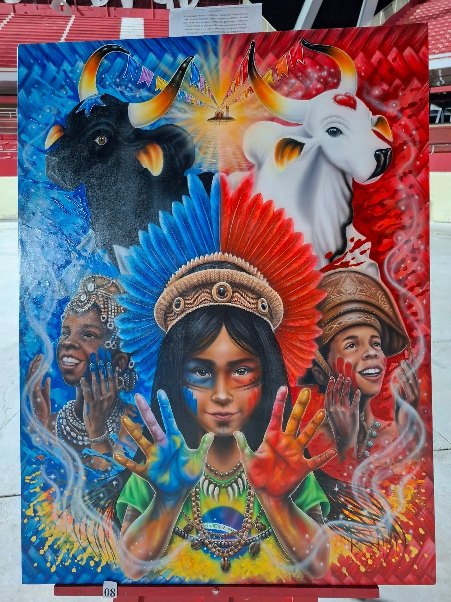 O Festival de Parintins 2026 já começa a tomar forma com a definição de sua identidade visual oficial. A obra “Parintins, a cor da minha raça”, do artista Pedro Paulo Tetsuro Medeiros Neo, foi a grande vencedora do concurso “Tela Campeã” e será aplicada na fachada do Bumbódromo durante a 59ª edição do evento.