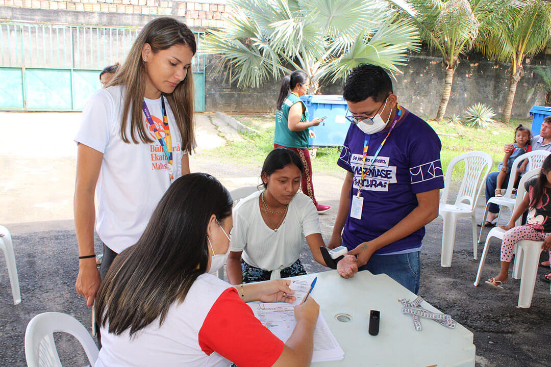 Indígena venezuelana recebendo atendimento médico em Manaus