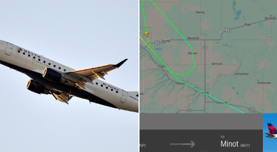 Dados do site de rastreamento de voos Flight Radar confirmam que o voo SkyWest 3788, que fazia a rota entre Minneapolis e Minot, realizou um grande desvio antes de aterrissar. A companhia aérea confirmou o incidente por meio de nota enviada à imprensa americana.