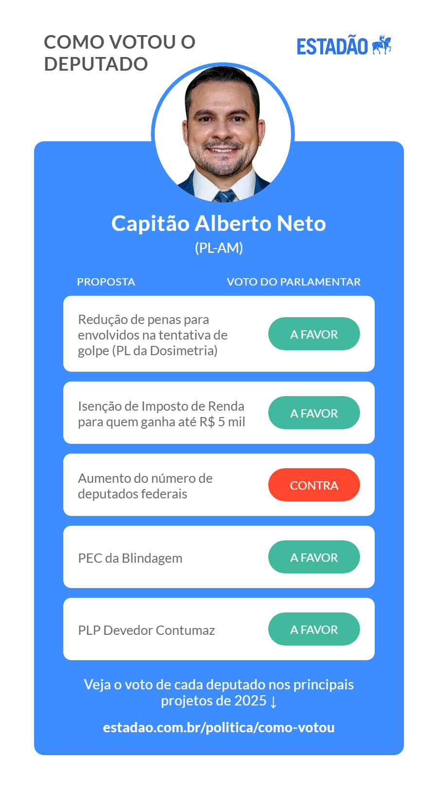 Uma ferramenta exclusiva do Estadão, analisada pela nossa redação, revela o voto a voto de sete parlamentares do estado em cinco projetos cruciais. O levantamento mostra que os deputados do Amazonas seguiram o ritmo nacional em pautas econômicas, mas expuseram rachaduras ideológicas e estratégicas em temas de governança e segurança.