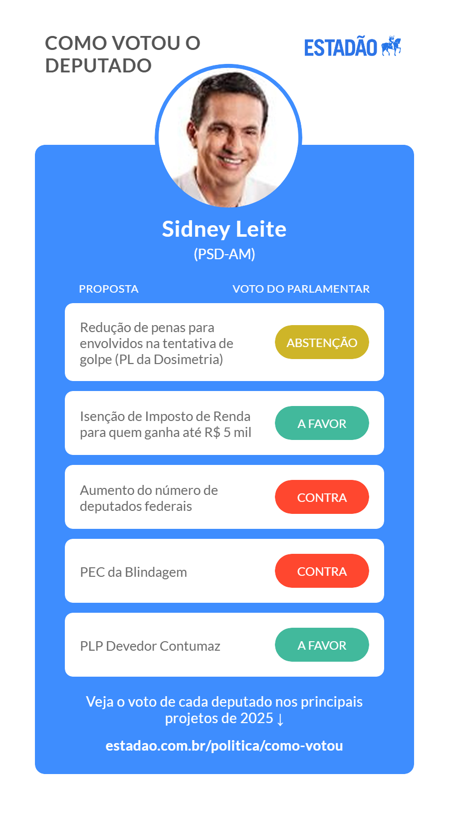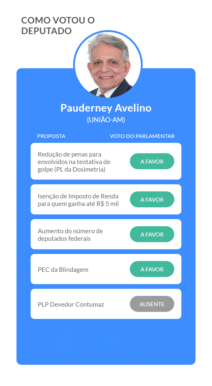 Apesar das diferenças partidárias, houve um consenso absoluto entre os parlamentares amazonenses analisados na pauta que mexe diretamente com o bolso do trabalhador. A isenção de Imposto de Renda para quem ganha até R$ 5 mil recebeu o voto “A Favor” de todos os deputados do Amazonas presentes no levantamento: Adail Filho (Republicanos), Amom Mandel (Cidadania), Átila Lins (PSD), Capitão Alberto Neto (PL), Fausto Jr. (União), Sidney Leite (PSD) e Silas Câmara (Republicanos).